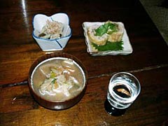 お酒に合わせて、付出(秋茄子と木の子の柚子浸し)、秋刀魚のさんが焼、地鶏ゴボウの信田巻、畳いわしの磯辺炙り、贅沢すいとんをお出ししました。