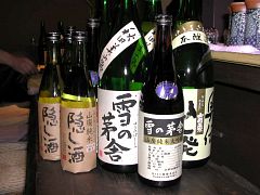 出品酒は6種類。「しぼりたて生酒」、「純米吟醸」、「美酒の設計・純米吟醸生酒」、「奥伝山廃本醸造」、「隠し酒1996年山廃純米酒」、「三石小仕込み山廃純米大吟醸」。 |
